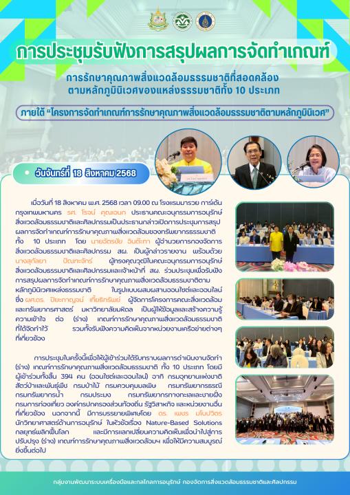 การประชุมรับฟังการสรุปผลการจัดทำเกณฑ์การรักษาคุณภาพสิ่งแวดล้อมธรรมชาติที่สอ...